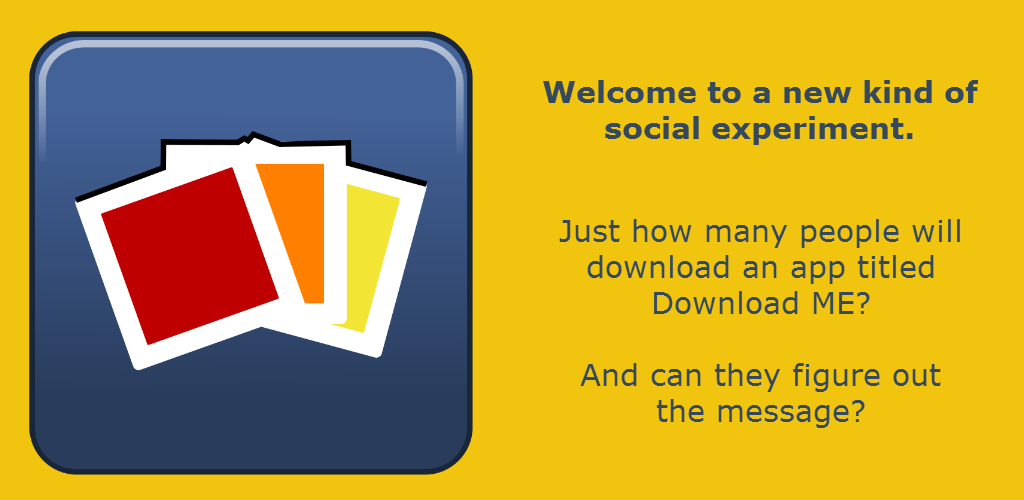 Download Me Social Experiment – A social experiment to see how many people would download an app called “Download Me” but we’ve turn it into something more, a community puzzle. While our main purpose stays the same, we thought to add a puzzle that users can collaborate on and submit guesses.